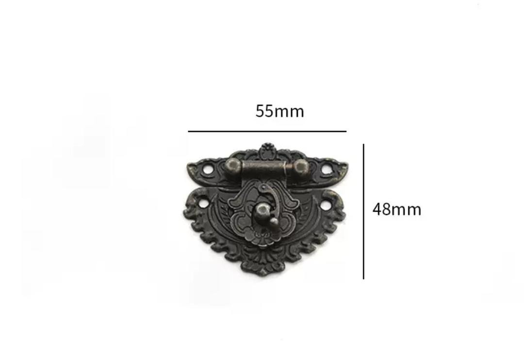 قفل تزئینی آنتیک طرح کلاسیک, ساخته شده از فلز مقاوم سرب، مناسب برای جعبههای چوبی، صندوقچه،سایل دکوراتیو و .... می باشد. این قفل با ابعاد 55×48 میلیمتر، جلوهای اصیل, آنتیک و لوکس به وسایل شما میبخشد. نصب آسان، دوام بالا و طراحی سنتی آن، انتخابی ایدهآل برای ساخت یا بازسازی وسایل چوبی قدیمی است.