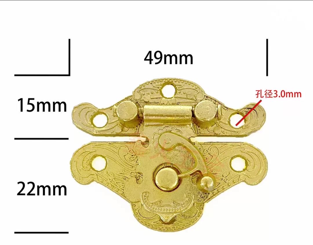 قفل تزئینی با طراحی آنتیک, کلاسیک و زیبا, مناسب برای انواع باکس چوبی, جعبه هدیه, جعبه جواهرات و صنایع دستی و هنری است. این قفل در دو سایز (37 * 49 و 38 * 29 میلی متر) و دو رنگ کاربردی ( طلایی و زردقلم ) به صورت عمده و خرده فروشی, آنلاین و حضوری به فروش می رسد.